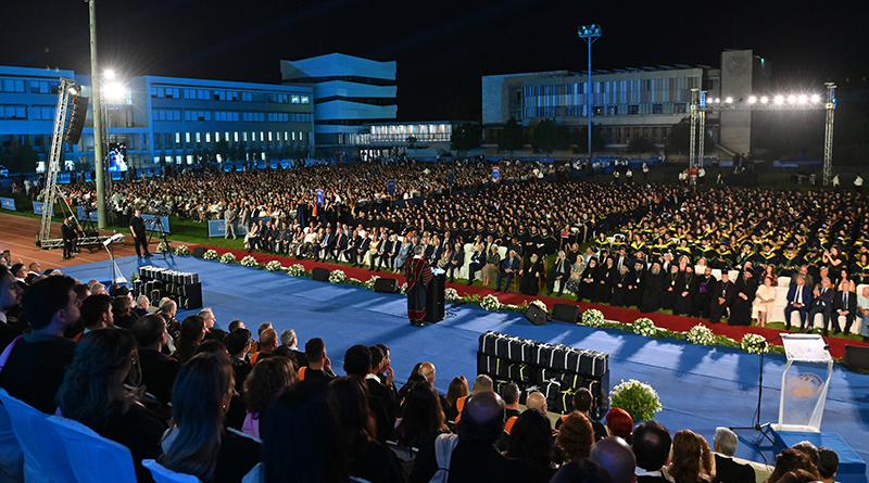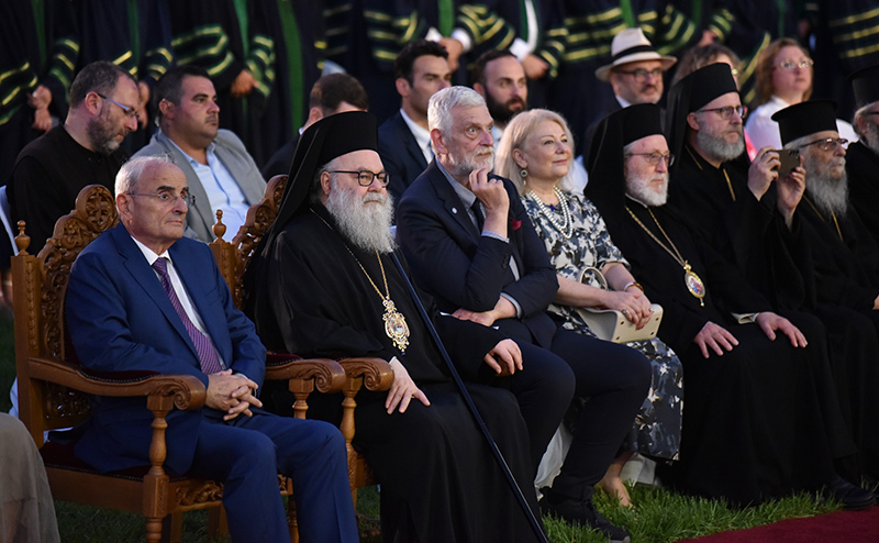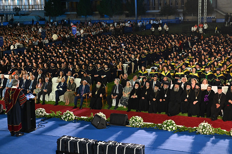 Present as well were Her Excellency the Minister of Education, Dr. Rima Karami; His Excellency the Minister of Culture, Dr. Ghassan Salameh; the keynote speaker, His Excellency Dr. Miguel Ángel Moratinos Cuyaubé, Under-Secretary-General of the United Nations; and guest speaker, His Excellency Mr. Ioannis-Michail Loverdos, Deputy Minister of Foreign Affairs of the Hellenic Republic. The ambassadors of Greece and Spain were also in attendance, along with bishops and metropolitans from Lebanon and the diaspora; MPs George Atallah, Fadi Karam, and Ashraf Rifi; a number of current and former ministers and MPs; General Omar Moujalled representing the Commander of the Lebanese Armed Forces, and representatives of the heads of security and military institutions, the President of the University of Balamand, Dr. Elias Warrak, alongside a large audience of family members and friends of the graduates.