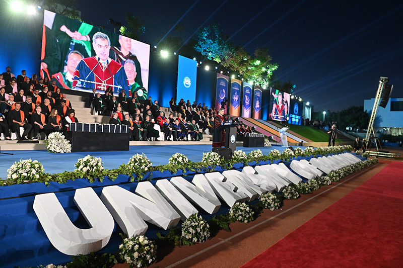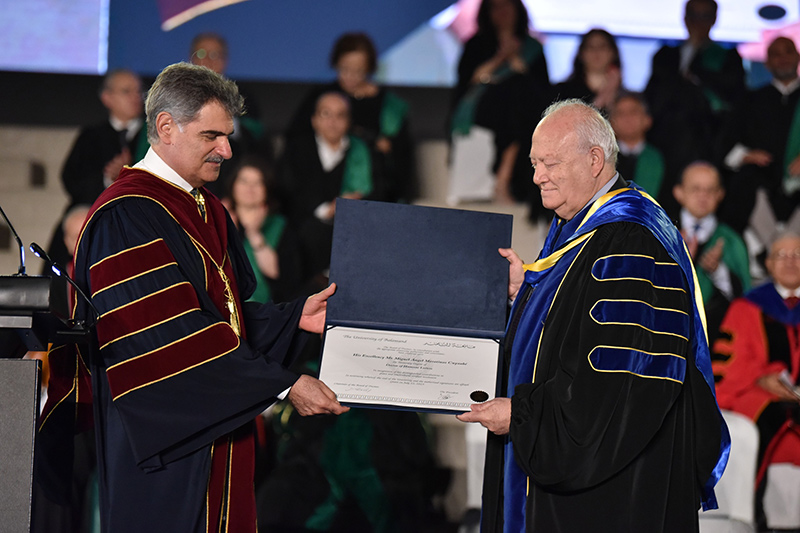 His Excellency Dr. Miguel Angel Moratinos, Under-Secretary-General of the United Nations, expressed his pride and deep appreciation for his friendship with Lebanon and the Lebanese people. He declared: “It is a profound privilege to stand before you today. A day of joy reflection and hope at this distinguished institution that embodies the spirit of Lebanon.” He then addressed the students, saying: “The graduation ceremony is a key moment in your life. It is time when your formation, training, learning end, and the new responsibilities start. It is the moment when you have to give back to your society.”