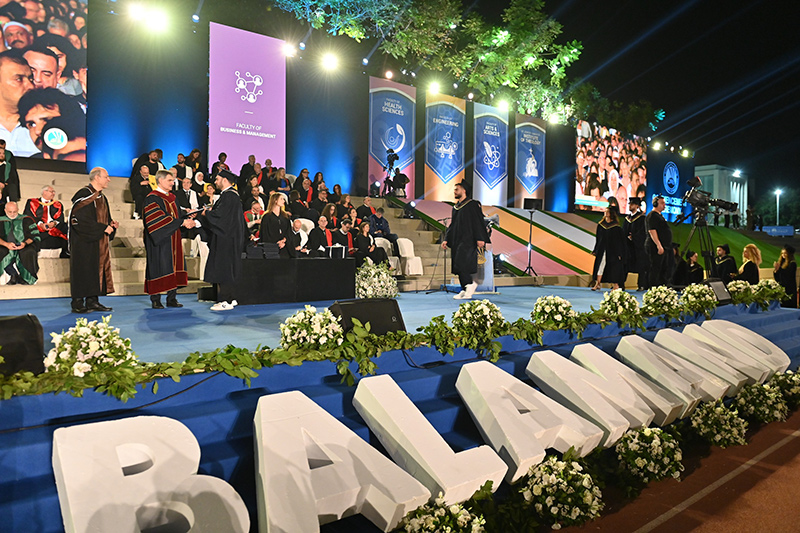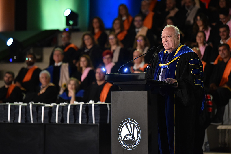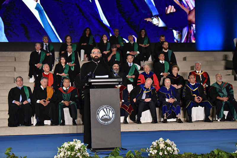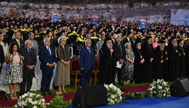 Following the processional entry of the graduates, the university president, and faculty members, the ceremony began with a blessing delivered by His Beatitude Patriarch John X. The Master of Ceremony Dr. Dima Issa welcomed the graduates and guests before introducing the evening’s speakers.
