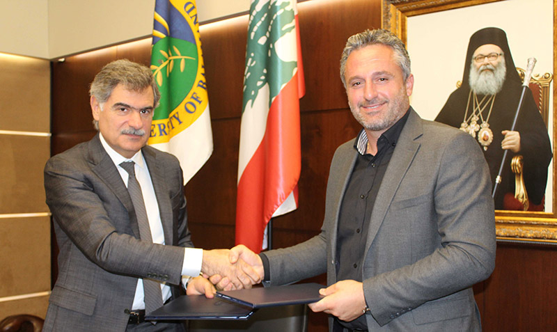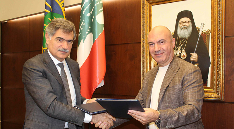 The University of Balamand (UOB), represented by its President Dr. Elias Warrak, signed academic partnership agreements with several heads of Municipalities from Akkar at the university’s main campus in Koura. These included the Head of the Municipalities Union of Al-Joumeh and Mayor of Rahbeh, Mr. Adnan Melhem; the Head of the Municipalities Union of North Akkar and Mayor of Qoubaiyat, Mr. Michel Abdo; the Head of the Municipalities Union of Chafit and Mayor of Miniara, Mr. Tony Abboud, represented by the Mayor of Halba, Mr. Abd el Hamid Halabi; and the Head of the Municipalities Union of West Dreib, Mr. Jean Jalloul, Head of Municipalities of Al Minieh, Mr. Toufic Zreika. Also in attendance were Dr. George Bahr, University of Balamand Provost, Dr. Salim Kanaan, Vice President for Enrollment Management and Dr. Elie Karam, Dean of the Issam M. Fares Faculty of Technology.