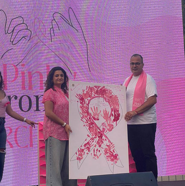 The event featured free health checks and consultations, a healthy food court, live music, fun activities, and the symbolic “Marche Rose” walk to show support for those affected by breast cancer.