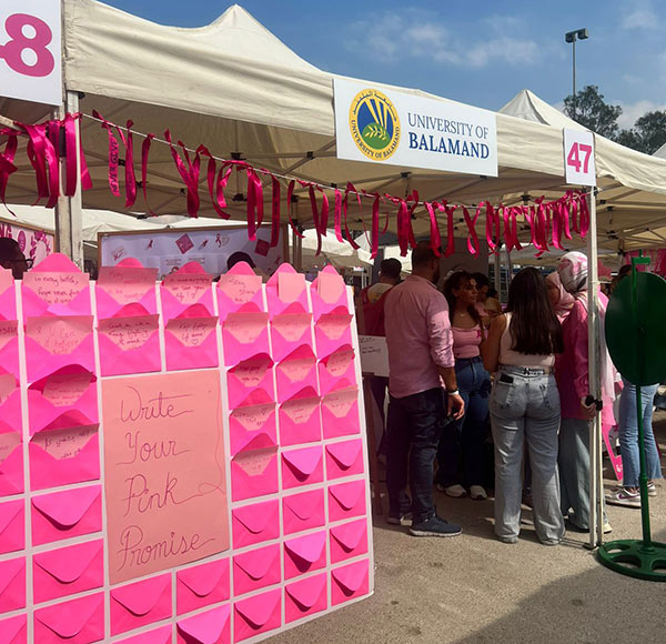 On October 18, 2025, the Faculty of Health Sciences at the University of Balamand participated in a Breast Cancer Awareness Day organized by the Barbara Nassar Cancer Center. The event was held at the Forum de Beirut parking area and brought together many universities and hospitals from across the country.