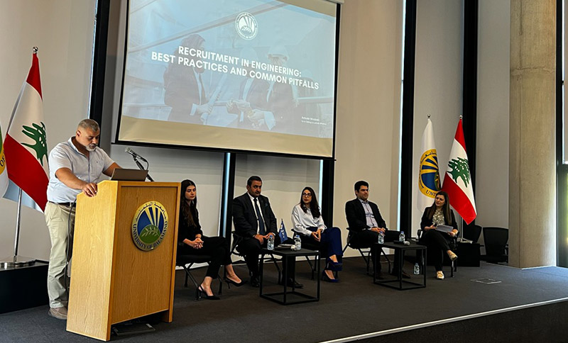 Introducing the session, Dr. Moustapha Al Hassan, representing Professor Abboud, emphasized the importance of hosting such discussions that bridge the gap between academic learning and industry expectations. He highlighted how these panels equip students with valuable insights into real-world recruitment practices, helping them enhance their professional skills and career readiness.
