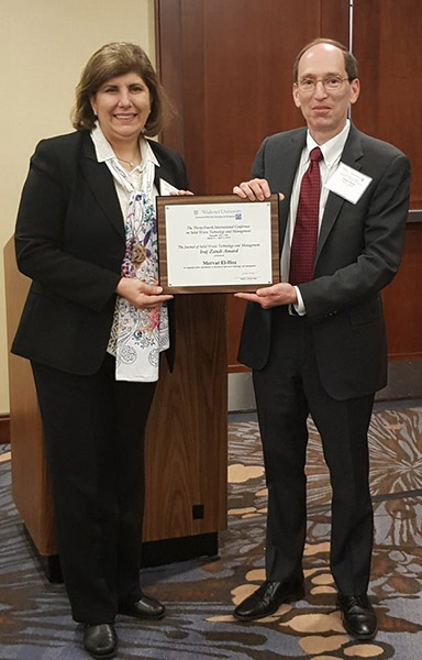 The Journal of Solid Waste Technology and Management presented the Environmental Engineering Professor Mervat El Hoz the Iraj Zandi Award for her contributions to the solid waste management field. The award was given at the annual International Conference on Solid Waste Technology and Management, which was held on March 31 - April 3 in Washington D.C. USA.