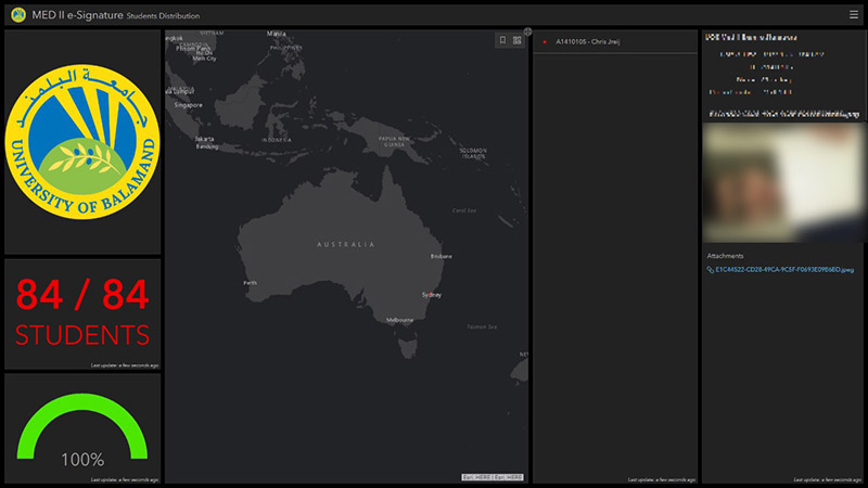 كما صمم مركز نظم المعلومات الجغرافية (GIS) في كلية الهندسة نهجًا مبتكرًا لتتبع الموقع الجغرافي للطلاب الخاضعين للامتحان. يضمن هذا النظام المبتكر تتبع موقع الطلاب الجغرافي بشكل مباشر أثناء خضوعهم للامتحان. يعتبر هذا النهج المبتكر نهجًا رائدًا، تنفرد به جامعة البلمند، والذي سيضمن أعلى معايير الجودة والنزاهة في الاختبارات عن بعد. إن كافة الجهود في هذا الإطار تنطلق من توجيهات رئيس الجامعة الدكتور الياس وراق الذي يترأس خلية الأزمة التي أنشأتها الجامعة لتعنى بمختلف أوجه ازمة كورونا وانعكاساتها.