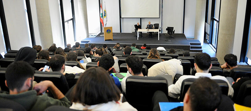 On February 27, the Department of Political Science and International Affairs concluded its 27-Minute Lecture Series with a thought-provoking talk by Mr. Ramzi el Hafez, publisher of Lebanon Opportunities and a prominent figure in the Lebanese business community. Co-hosted by the Faculty of Business and Management, the lecture explored the intricate relationship between politics, governance, and business behavior in Lebanon. Dean Karim Rebeiz of the Faculty of Business and Management introduced Mr. El Hafez, setting the stage for a discussion that shed light on the challenges facing Lebanon’s economic and political landscape.