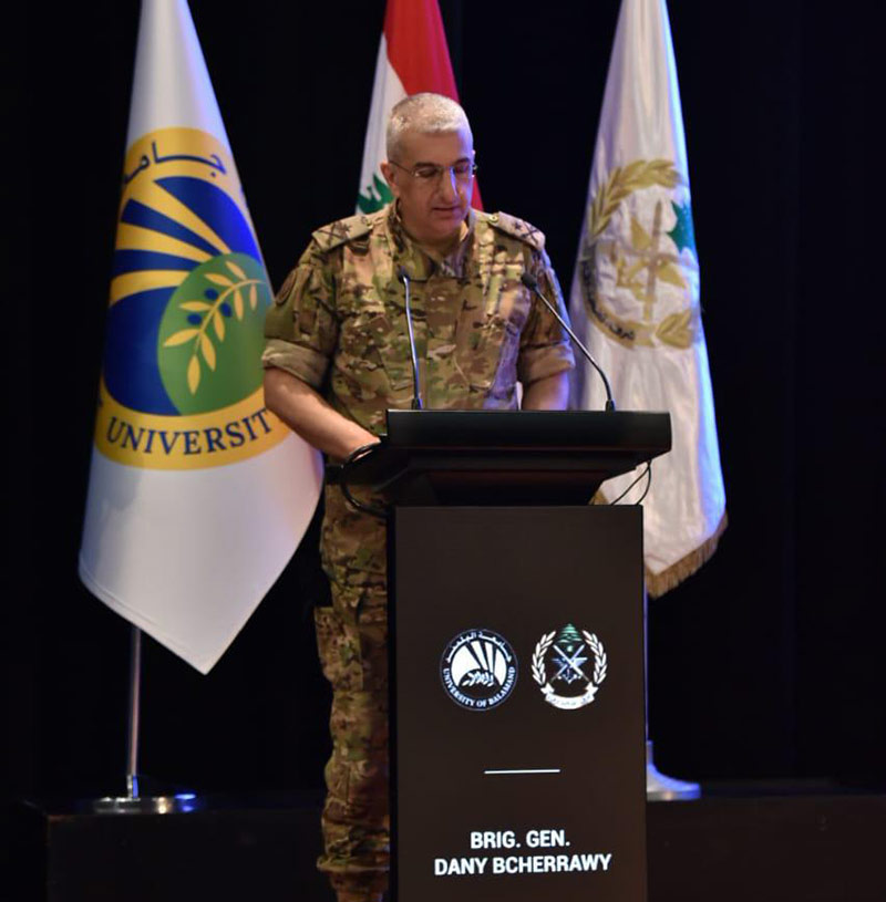 Major General Hassan Aoude, representing Lebanese Armed Forces Commander General, emphasized: “Our gathering at the Crisis Management in the Health Sector Conference at UOB reflects the shared will of many national institutions, especially the Ministry of Public Health, alongside senior officials and experts from various healthcare-related fields. Together, we aim to strengthen Lebanon’s healthcare system and prepare it to face future public health crises.” He added: “The Lebanese Army has done everything it can to play an active role during serious health crises, fulfilling its ethical and professional duty to stand by the Lebanese people.”