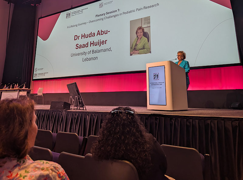 The University of Balamand (UOB) is proud to announce that Dr. Huda Huijer, Dean of the Faculty of Health Sciences, was invited as a plenary speaker at the 15th Bi-annual International Symposium on Paediatric Pain (ISPP 2025), which took place from June 16 to 20, 2025, in Glasgow, Scotland.