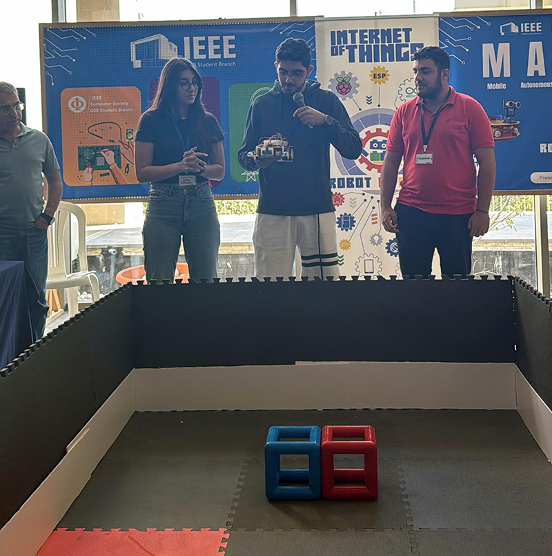 The Faculty of Engineering under the University of Balamand proudly hosted the eighth edition of the Mobile Autonomous Robotics Competition (MARCAB) on May 16, 2025. Organized under the supervision of Lab Instructor Ms. Katia Karam and in collaboration with the IEEE UOB Student Chapter, this year’s competition served as the final project for the Microcontrollers Laboratory course CPEN 305.