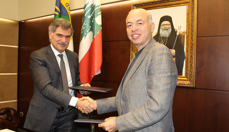 The University of Balamand (UOB), represented by its President Dr. Elias Warrak, signed academic partnership agreements with several heads of Municipalities from Akkar at the university’s main campus in Koura. These included the Head of the Municipalities Union of Al-Joumeh and Mayor of Rahbeh, Mr. Adnan Melhem; the Head of the Municipalities Union of North Akkar and Mayor of Qoubaiyat, Mr. Michel Abdo; the Head of the Municipalities Union of Chafit and Mayor of Miniara, Mr. Tony Abboud, represented by the Mayor of Halba, Mr. Abd el Hamid Halabi; and the Head of the Municipalities Union of West Dreib, Mr. Jean Jalloul, Head of Municipalities of Al Minieh, Mr. Toufic Zreika. Also in attendance were Dr. George Bahr, University of Balamand Provost, Dr. Salim Kanaan, Vice President for Enrollment Management and Dr. Elie Karam, Dean of the Issam M. Fares Faculty of Technology.