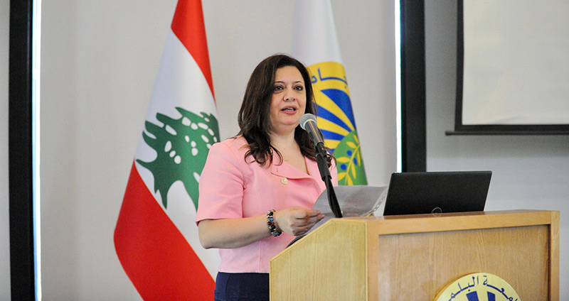 الدّكتورة دورين نصر، أستاذة اللّغة العربيّة في جامعة البلمند، بحضور العميد عدنان