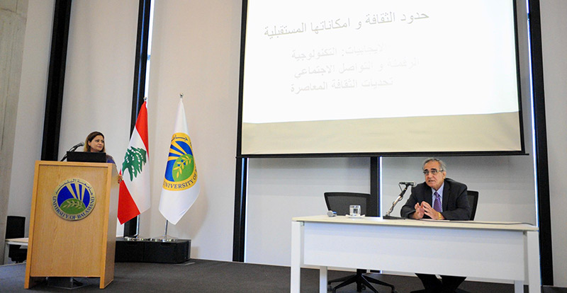 On the 24h of September, 2025, the Faculty of Arts and Sciences at the University of Balamand (UOB) hosted Dr. Nabil al Khatib, President of the Arab-American Center for Culture and Arts and former Dean of the Faculty of Arts at the Lebanese University. Dr. al Khatib delivered a lecture entitled “Hunger and Culture”, as part of the course Arab 201, supervised by Dr. Dorine Nasr, instructor of Arabic at UOB in presence of Brigadier General Adnan Ezzedine, Dr. Maria Nasr Chairperson of the Department of Languages and Translation, students from the Arabic Language and Literature Department, as well as a number of students from Khalil Salem High School.
