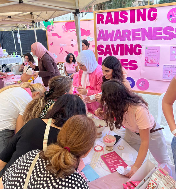 On October 18, 2025, the Faculty of Health Sciences at the University of Balamand participated in a Breast Cancer Awareness Day organized by the Barbara Nassar Cancer Center. The event was held at the Forum de Beirut parking area and brought together many universities and hospitals from across the country.