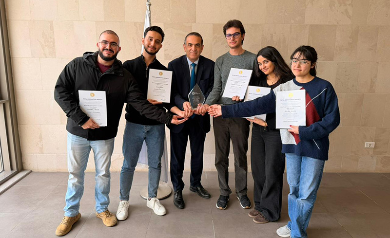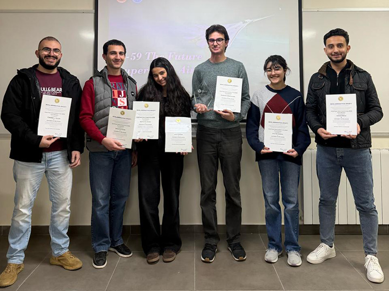 A team of students from the Aircraft Maintenance and Mechanical Engineering (Aeronautical) programs at the University of Balamand (UOB) has achieved an international success by winning the Team Award of the Year at the RAeS AeroTube 2025 competition, organized by the Royal Aeronautical Society.