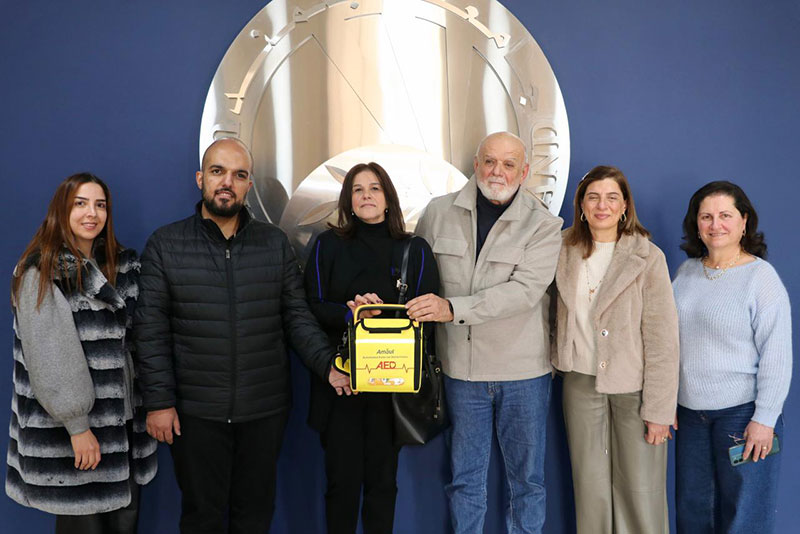 On the 27th of March 2026, the University of Balamand welcomed Mr. and Mrs. Douaihy, founders of the NGO (من قلب إيڤ), at the Koura campus, who donated an Automated External Defibrillator (AED) to support the safety and wellbeing of UOB students.