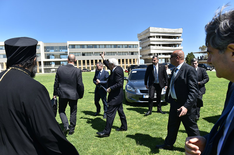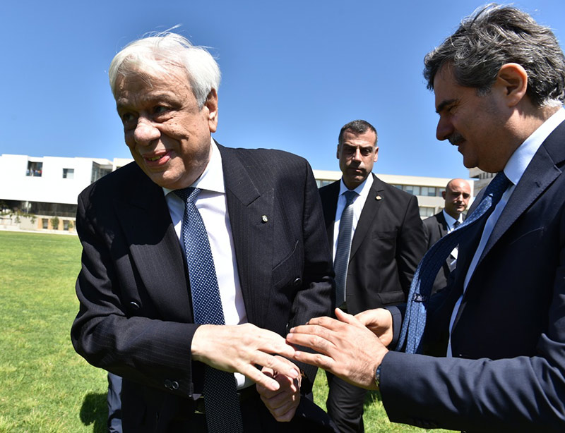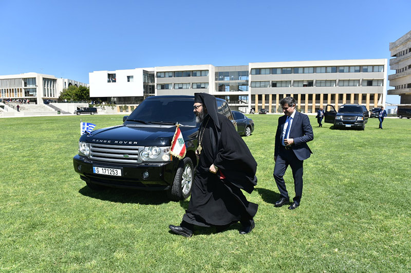 Greek President Prokopius Pavlopoulos landed on the grounds of the University of Balamand on Friday the 12th of April, 2019 where he was greeted by President Elias Warrak and Father Romanos, who then accompanied him to the Patriarchal Monastery of Our Lady of Balamand to meet with His Beatitude John X Yazji, Patriarch of Antioch and all the East. During the visit, His Beatitude, decorated President Pavlopoulos with the Order of Apostles Peter and Paul.